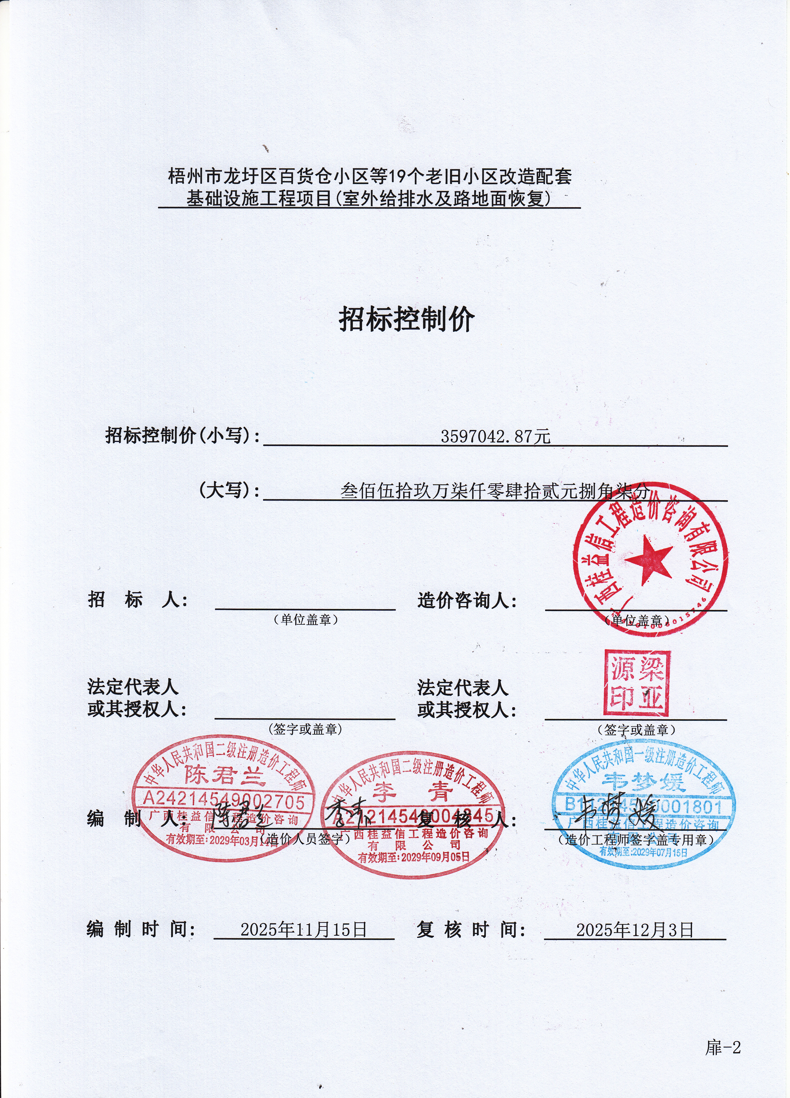 梧州市龙圩区百货仓小区等19个老旧小区改造配套基础设施工程项目(室外给排水及路地面恢复)(WZZC2025-C2-060059-XGZX) 更正公告(二)